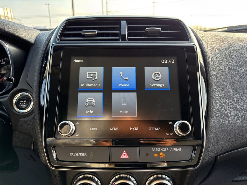 2022 Mitsubishi Outlander Sport 2.0 SE Labrador Black Pearl 2.0 SE 4WD CVT 2.0L I4 SMPI DOHC 16V LEV3-ULEV70 148hp 4WD, 4-Wheel Disc Brakes, 6 Speakers, 6.026 Axle Ratio, ABS brakes, Air Conditioning, Alloy wheels, AM/FM radio: SiriusXM, Android Auto & Apple CarPlay, Auto High-beam Headlights, Auto-dimming Rear-View mirror, Automatic temperature control, Brake assist, Bumpers: body-color, Combination Soft-Touch Seat Trim, Delay-off headlights, Driver door bin, Driver vanity mirror, Dual front impact airbags, Dual front side impact airbags, Electronic Stability Control, Exterior Parking Camera Rear, Four wheel independent suspension, Front anti-roll bar, Front Bucket Seats, Front Center Armrest, Front fog lights, Front reading lights, Fully automatic headlights, Heated door mirrors, Heated Front Bucket Seats, Heated front seats, Illuminated entry, Knee airbag, Leather Shift Knob, Low tire pressure warning, Occupant sensing airbag, Outside temperature display, Overhead airbag, Panic alarm, Passenger door bin, Passenger vanity mirror, Power door mirrors, Power steering, Power windows, Radio data system, Radio: AM/FM 8.0" Smartphone Link Display Audio, Rain sensing wipers, Rear anti-roll bar, Rear seat center armrest, Rear window defroster, Rear window wiper, Remote keyless entry, Security system, Speed control, Speed-sensing steering, Split folding rear seat, Spoiler, Steering wheel mounted audio controls, Tachometer, Telescoping steering wheel, Tilt steering wheel, Traction control, Trip computer, Turn signal indicator mirrors, Variably intermittent wipers, Wheels: 18" Two-Tone Alloy, 4WD.