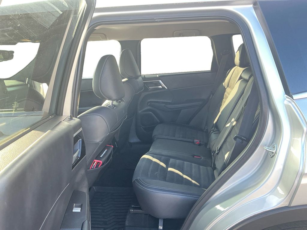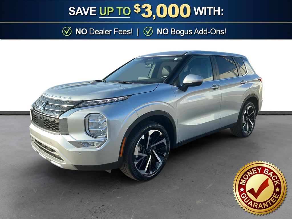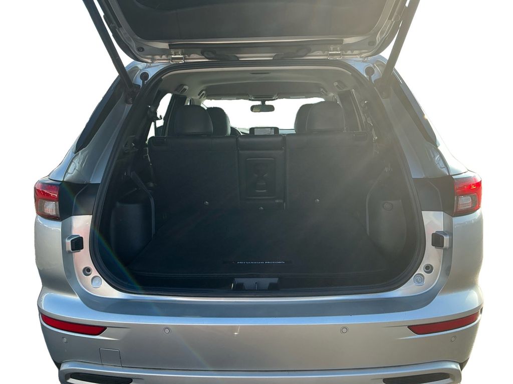 2023 Mitsubishi Outlander SE Alloy Silver Metallic SE FWD CVT 2.5L 4-Cylinder DOHC 3rd row seats: split-bench, 4-Wheel Disc Brakes, 5.694 Axle Ratio, 6 Speakers, ABS brakes, Air Conditioning, Alloy wheels, AM/FM radio: SiriusXM, Android Auto & Apple CarPlay, Auto High-beam Headlights, Automatic temperature control, Brake assist, Bumpers: body-color, Driver door bin, Driver vanity mirror, Dual front impact airbags, Dual front side impact airbags, Electronic Stability Control, Emergency communication system: Mitsubishi Connect w/ 24-month trial, Exterior Parking Camera Rear, Four wheel independent suspension, Front anti-roll bar, Front Bucket Seats, Front Center Armrest w/Storage, Front dual zone A/C, Front fog lights, Front reading lights, Fully automatic headlights, Heated door mirrors, Heated Front Bucket Seats, Heated front seats, Illuminated entry, Knee airbag, Leather Shift Knob, Leather steering wheel, Low tire pressure warning, Navigation System, Occupant sensing airbag, Outside temperature display, Overhead airbag, Overhead console, Panic alarm, Passenger door bin, Passenger vanity mirror, Power door mirrors, Power driver seat, Power Liftgate, Power steering, Power windows, Radio data system, Radio: AM/FM 9.0" Navigation w/Smartphone Link, Rain sensing wipers, Rear anti-roll bar, Rear seat center armrest, Rear side impact airbag, Rear window defroster, Rear window wiper, Reclining 3rd row seat, Remote keyless entry, Security system, Speed control, Speed-Sensitive Wipers, Split folding rear seat, Spoiler, Steering wheel mounted audio controls, Synthetic Leather Seat Trim, Tachometer, Telescoping steering wheel, Tilt steering wheel, Traction control, Trip computer, Turn signal indicator mirrors, Variably intermittent wipers.
