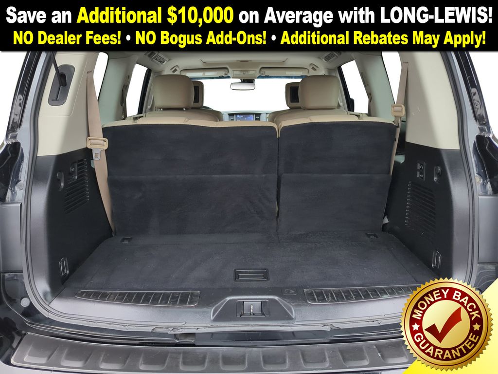 13 Speakers, 2.937 Axle Ratio, 3rd row seats: split-bench, 4-Wheel Disc Brakes, A/V remote, ABS brakes, Air Conditioning, Alloy wheels, AM/FM radio: SiriusXM, Anti-whiplash front head restraints, Auto tilt-away steering wheel, Auto-dimming door mirrors, Auto-dimming Rear-View mirror, Auto-leveling suspension, Automatic temperature control, Brake assist, Bumpers: body-color, Captain Seat Package, Cargo Area Protector, Cargo Net & First Aid Kit, Carpeted Floor Mats w/ Captain Seat Package, CD player, Delay-off headlights, Driver door bin, Driver vanity mirror, Dual front impact airbags, Dual front side impact airbags, Electronic Stability Control, Four wheel independent suspension, Front anti-roll bar, Front Bucket Seats, Front Center Armrest, Front dual zone A/C, Front fog lights, Front reading lights, Fully automatic headlights, Garage door transmitter: HomeLink, Headphones, Heated & Cooled Front Bucket Seats, Heated door mirrors, Heated front seats, Heated rear seats, Heated steering wheel, Illuminated entry, Illuminated Kick Plates, Lane Departure Warning System, Leather Shift Knob, Leather-Appointed Seat Trim, Low tire pressure warning, Memory seat, Navigation System, Occupant sensing airbag, Outside temperature display, Overhead airbag, Overhead console, Panic alarm, Passenger door bin, Passenger vanity mirror, Power door mirrors, Power driver seat, Power Liftgate, Power moonroof, Power passenger seat, Power steering, Power windows, Radio data system, Radio: Bose AM/FM/SXM/CD/MP3 Audio System, Rain sensing wipers, Rear air conditioning, Rear anti-roll bar, Rear reading lights, Rear seat center armrest, Rear window defroster, Rear window wiper, Reclining 3rd row seat, Remote keyless entry, Roof rack: rails only, Roof Rail Cross Bars, Second Row Captain's Chairs, Second Row Center Console w/ Padded Armrest, Security system, Speed control, Speed-sensing steering, Speed-Sensitive Wipers, Split folding rear seat, Steering wheel mounted audio controls, Tachometer, Telescoping steering wheel, Tilt steering wheel, Traction control, Trip computer, Turn signal indicator mirrors, USB Charging Ports, Variably intermittent wipers, Ventilated front seats, Voltmeter, Wheels: 20" Machine-Faced Chrome w/Tinted CC.