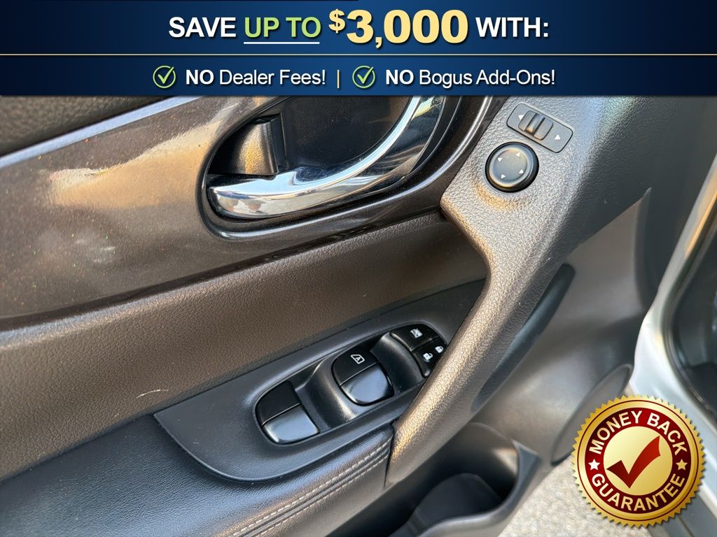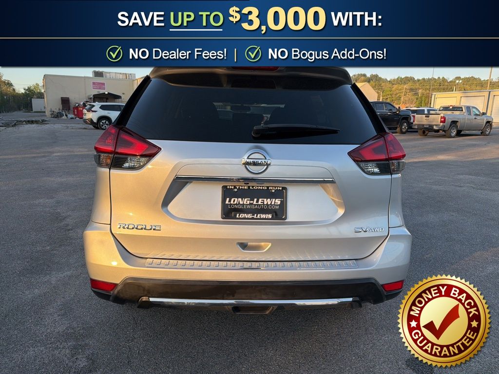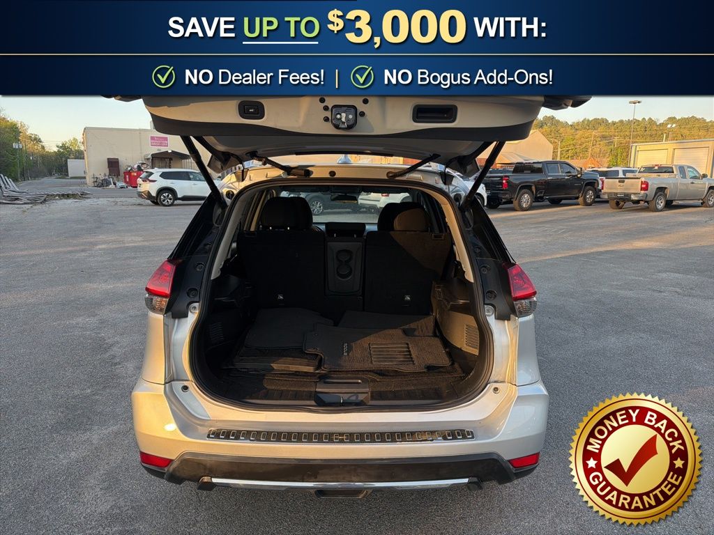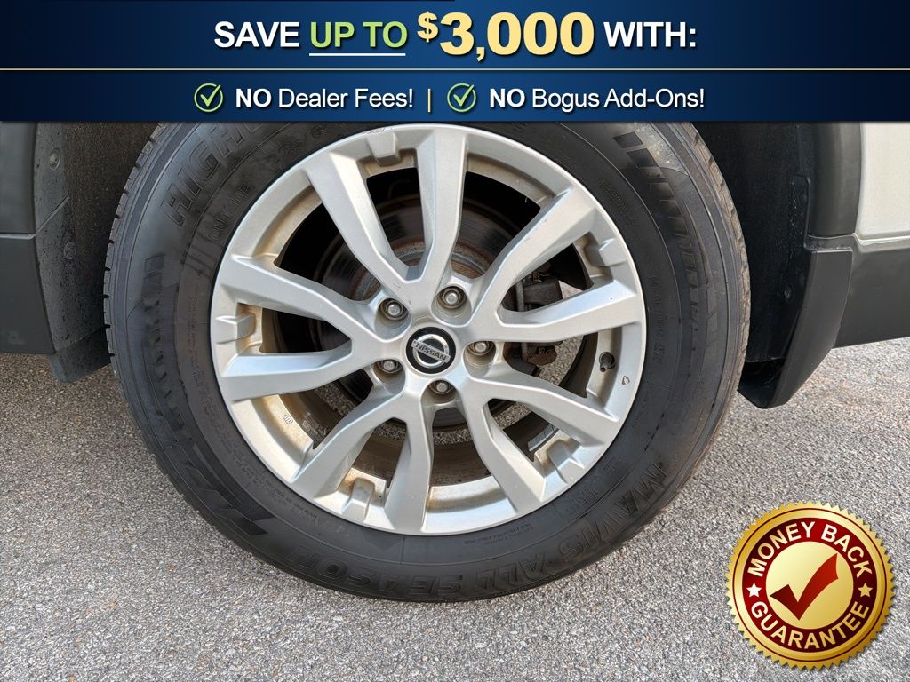 AWD, 17" Aluminum Alloy Wheels, 4-Wheel Disc Brakes, 6 Speakers, 6.386 Axle Ratio, ABS brakes, Air Conditioning, Alloy wheels, AM/FM radio: SiriusXM, Anti-whiplash front head restraints, Apple CarPlay/Android Auto, Automatic temperature control, Black Splash Guards (Set of 4), Blind Spot Warning, Brake assist, Bumpers: body-color, CD player, Chrome Rear Bumper Protector, Cloth Seat Trim, Delay-off headlights, Driver door bin, Driver vanity mirror, Dual front impact airbags, Dual front side impact airbags, Electronic Stability Control, Floor Mats & 2-PC Cargo Area Protector, Four wheel independent suspension, Front anti-roll bar, Front Bucket Seats, Front Center Armrest w/Storage, Front dual zone A/C, Front reading lights, Fully automatic headlights, Heated door mirrors, Heated front seats, Illuminated entry, Leather Shift Knob, Low tire pressure warning, Occupant sensing airbag, Outside temperature display, Overhead airbag, Overhead console, Panic alarm, Passenger door bin, Passenger vanity mirror, Power door mirrors, Power driver seat, Power Liftgate, Power steering, Power windows, Quick Comfort Heated Front Bucket Seats, Radio data system, Radio: AM/FM/CD/AUX, Radio: AM/FM/CD/AUX NissanConnect w/Navigation, Rear anti-roll bar, Rear seat center armrest, Rear window defroster, Rear window wiper, Remote keyless entry, Roof rack: rails only, Security system, Speed control, Speed-sensing steering, Split folding rear seat, Spoiler, Steering wheel mounted audio controls, Tachometer, Telescoping steering wheel, Tilt steering wheel, Traction control, Trip computer, Turn signal indicator mirrors, Variably intermittent wipers, AWD. 2018 Nissan Rogue SV