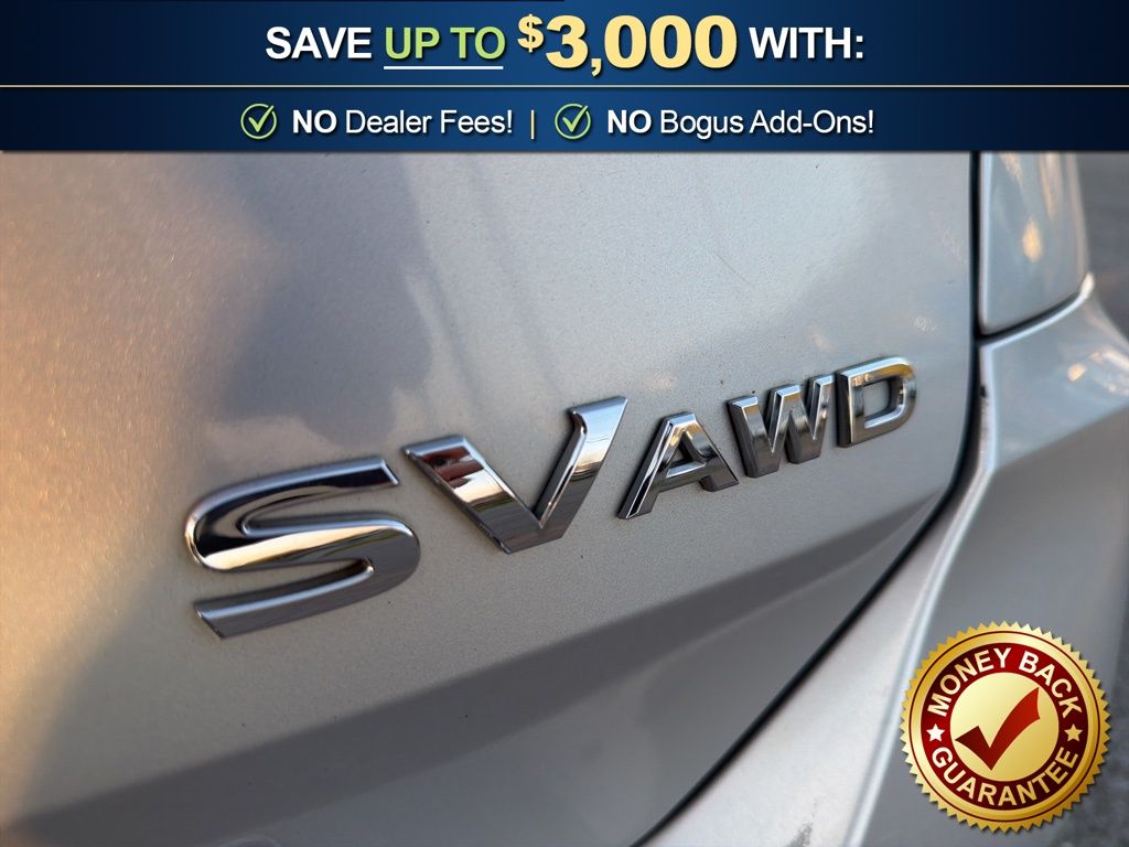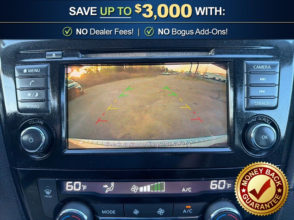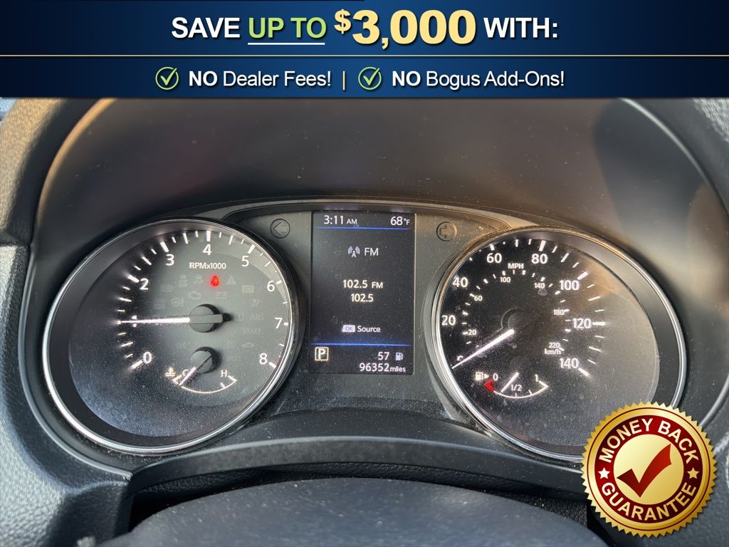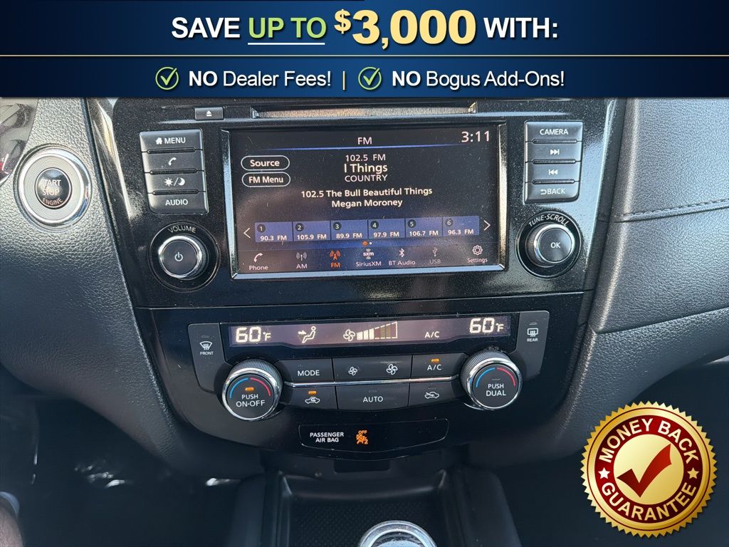AWD, 17" Aluminum Alloy Wheels, 4-Wheel Disc Brakes, 6 Speakers, 6.386 Axle Ratio, ABS brakes, Air Conditioning, Alloy wheels, AM/FM radio: SiriusXM, Anti-whiplash front head restraints, Apple CarPlay/Android Auto, Automatic temperature control, Black Splash Guards (Set of 4), Blind Spot Warning, Brake assist, Bumpers: body-color, CD player, Chrome Rear Bumper Protector, Cloth Seat Trim, Delay-off headlights, Driver door bin, Driver vanity mirror, Dual front impact airbags, Dual front side impact airbags, Electronic Stability Control, Floor Mats & 2-PC Cargo Area Protector, Four wheel independent suspension, Front anti-roll bar, Front Bucket Seats, Front Center Armrest w/Storage, Front dual zone A/C, Front reading lights, Fully automatic headlights, Heated door mirrors, Heated front seats, Illuminated entry, Leather Shift Knob, Low tire pressure warning, Occupant sensing airbag, Outside temperature display, Overhead airbag, Overhead console, Panic alarm, Passenger door bin, Passenger vanity mirror, Power door mirrors, Power driver seat, Power Liftgate, Power steering, Power windows, Quick Comfort Heated Front Bucket Seats, Radio data system, Radio: AM/FM/CD/AUX, Radio: AM/FM/CD/AUX NissanConnect w/Navigation, Rear anti-roll bar, Rear seat center armrest, Rear window defroster, Rear window wiper, Remote keyless entry, Roof rack: rails only, Security system, Speed control, Speed-sensing steering, Split folding rear seat, Spoiler, Steering wheel mounted audio controls, Tachometer, Telescoping steering wheel, Tilt steering wheel, Traction control, Trip computer, Turn signal indicator mirrors, Variably intermittent wipers, AWD. 2018 Nissan Rogue SV