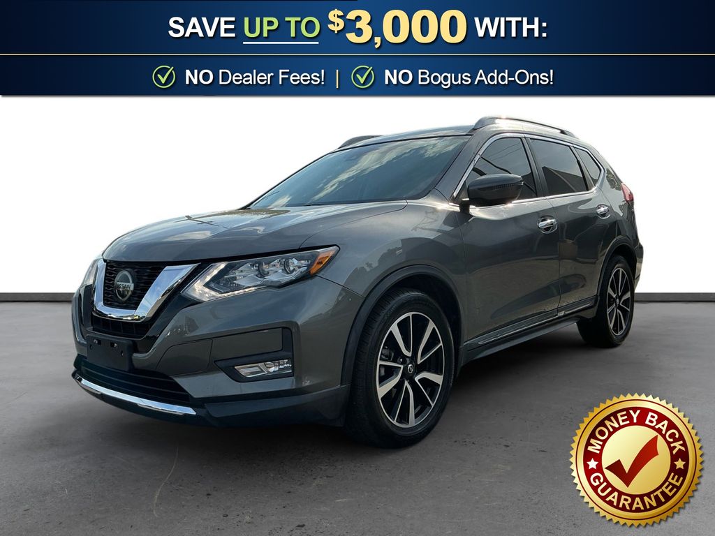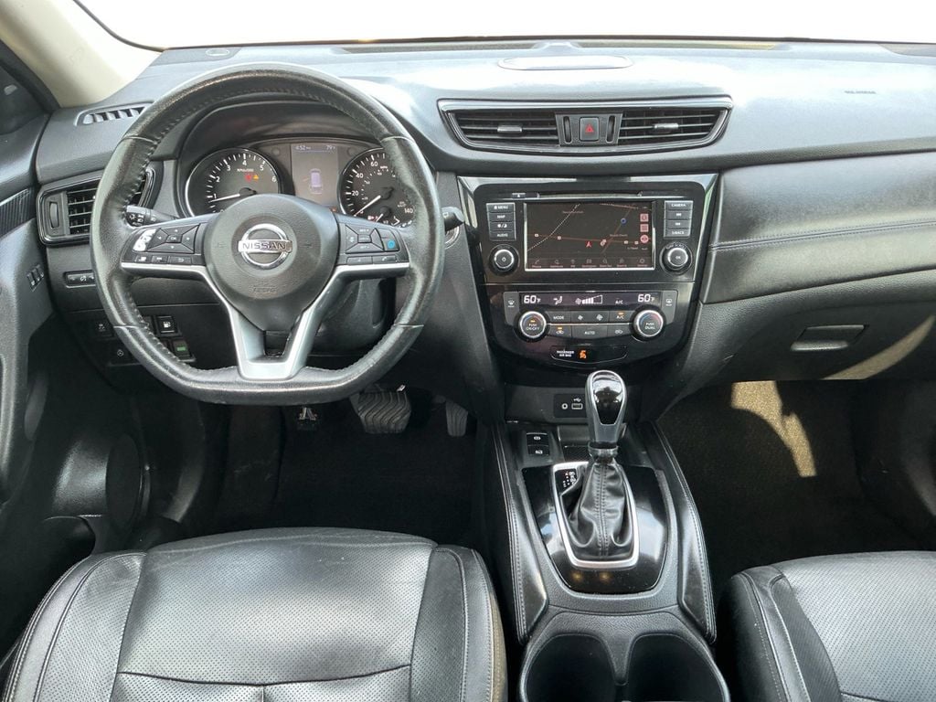 2020 Nissan Rogue SL Gun Metallic SL FWD CVT with Xtronic 2.5L I4 DOHC 16V 19" Aluminum Alloy Wheels, 4-Wheel Disc Brakes, 6.386 Axle Ratio, 9 Speakers, ABS brakes, Air Conditioning, Alloy wheels, AM/FM radio: SiriusXM, Anti-whiplash front head restraints, Auto High-beam Headlights, Auto-dimming Rear-View mirror, Automatic temperature control, Black Splash Guards (Set of 4), Blind Spot Warning, Bose Audio, Brake assist, Bumpers: body-color, CD player, Chrome Rear Bumper Protector, Delay-off headlights, Driver door bin, Driver vanity mirror, Dual front impact airbags, Dual front side impact airbags, Electronic Stability Control, Emergency communication system: NissanConnect Services, Exterior Parking Camera Rear, First Aid Kit, Floor Mats & 2-PC Cargo Area Protector, Four wheel independent suspension, Front anti-roll bar, Front Bucket Seats, Front Center Armrest w/Storage, Front dual zone A/C, Front fog lights, Front reading lights, Fully automatic headlights, Garage door transmitter: HomeLink, Heated door mirrors, Heated Front Bucket Seats, Heated front seats, Heated steering wheel, Illuminated entry, Lane Departure Warning System, Leather Shift Knob, Leather-Appointed Seat Trim, Low tire pressure warning, Memory seat, Navigation System, NissanConnect featuring Apple CarPlay and Android Auto, Occupant sensing airbag, Outside temperature display, Overhead airbag, Overhead console, Panic alarm, Passenger door bin, Passenger vanity mirror, Power door mirrors, Power driver seat, Power Liftgate, Power passenger seat, Power steering, Power windows, Radio data system, Radio: AM/FM/CD/AUX NissanConnect w/Navigation, Rear anti-roll bar, Rear Parking Sensors, Rear seat center armrest, Rear USB Ports, Rear window defroster, Rear window wiper, Remote keyless entry, Roof rack: rails only, Security system, Speed control, Speed-sensing steering, Split folding rear seat, Spoiler, Steering wheel mounted audio controls, Tachometer, Telescoping steering wheel, Tilt steering wheel, Traction control, Trip computer, Turn signal indicator mirrors, Variably intermittent wipers.