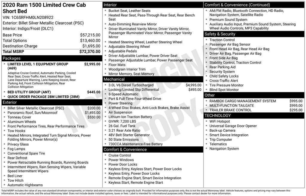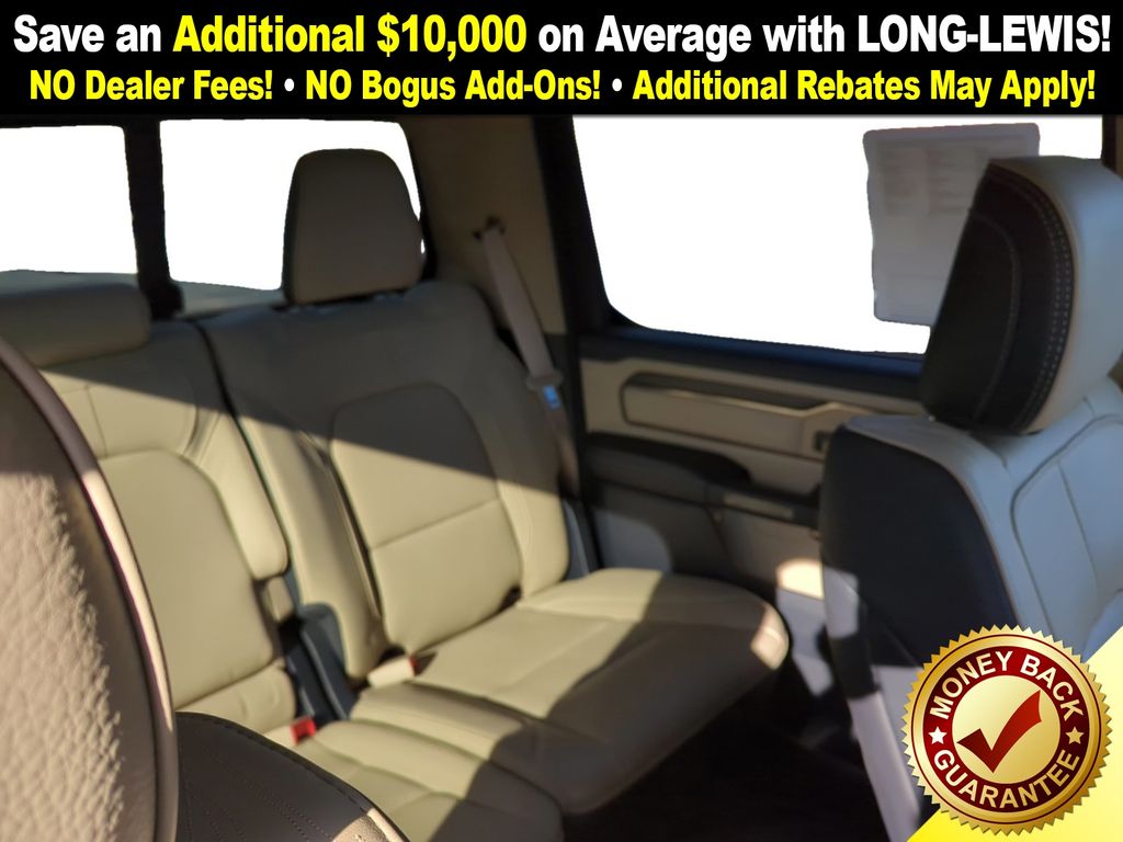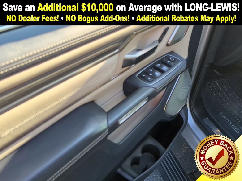 New Price! Priced below KBB Fair Purchase Price! 10 Speakers, 3.21 Rear Axle Ratio, 4-Wheel Disc Brakes, 48V Belt Starter Generator, ABS brakes, Adjustable pedals, Air Conditioning, Alloy wheels, AM/FM radio: SiriusXM with 360L, Anti-Spin Differential Rear Axle, Apple CarPlay/Android Auto, Audio memory, Auto High-beam Headlights, Auto-dimming door mirrors, Auto-dimming Rear-View mirror, Auto-leveling suspension, Automatic temperature control, Bed Utility Group, Bodyside moldings, Brake assist, Bumpers: chrome, Compass, Delay-off headlights, Dome Dual LED Reading Lamp, Driver door bin, Driver vanity mirror, Dual front impact airbags, Dual front side impact airbags, Dual-Pane Panoramic Sunroof, Electronic Stability Control, Emergency communication system: SiriusXM Guardian, Front anti-roll bar, Front Bucket Seats, Front Center Armrest w/Storage, Front dual zone A/C, Front fog lights, Front reading lights, Front wheel independent suspension, Fully automatic headlights, Garage door transmitter, Genuine wood console insert, Genuine wood dashboard insert, Genuine wood door panel insert, Heated door mirrors, Heated front seats, Heated rear seats, Heated steering wheel, Illuminated entry, Leather steering wheel, LED Dome/Reading Lamp, Limited Level 1 Equipment Group, Low tire pressure warning, Memory seat, Multi-Function Tailgate, Navigation System, Occupant sensing airbag, Outside temperature display, Overhead airbag, Overhead console, Panic alarm, ParkView Rear Back-Up Camera, Passenger door bin, Passenger vanity mirror, Pedal memory, Power door mirrors, Power driver seat, Power passenger seat, Power steering, Power windows, Premium Leather Trimmed Bucket Seats, Quick Order Package 28M Limited, Radio data system, Radio: Uconnect 12 w/Navigation, Rain sensing wipers, RamBox Cargo Management System, Rear anti-roll bar, Rear seat center armrest, Rear step bumper, Rear window defroster, Remote keyless entry, Security system, Speed control, Split folding rear seat, Steering wheel mounted audio controls, Tachometer, Telescoping steering wheel, Tilt steering wheel, Traction control, Trailer Brake Control, Tri-Fold Tonneau Cover, Trip computer, Turn signal indicator mirrors, Variably intermittent wipers, Ventilated front seats, Voltmeter, Wheels: 20" x 9" Polished w/Inserts.
