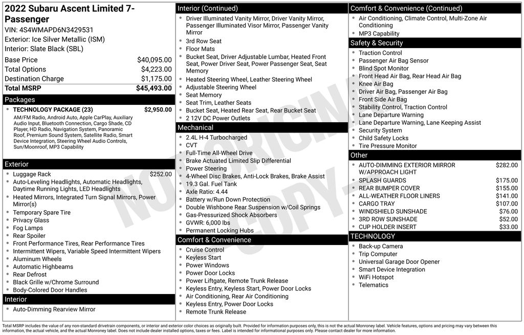 The 2022 Subaru Ascent Limited AWD offers luxury, advanced technology, and spacious versatility in a rugged, family-friendly SUV. With 7-passenger seating, AWD capability, and premium features, its perfect for commuting, adventures, or family road trips all at an excellent value under $25K.