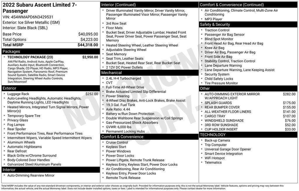Used 2022 SubaruAscent Limited 7-Passenger