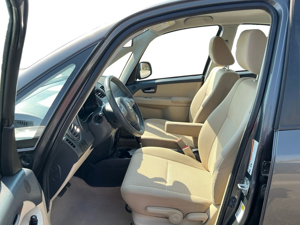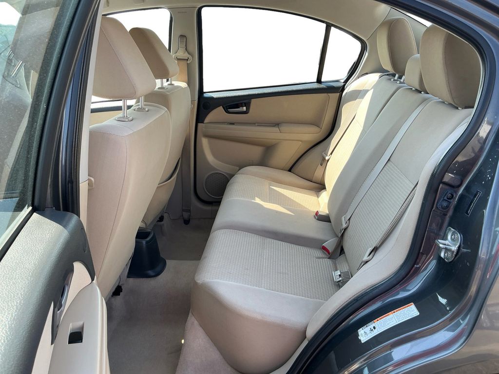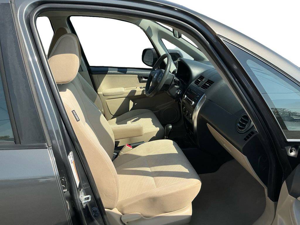2012 Suzuki SX4 Charcoal FWD 2.0L I4 DOHC 16V 4 Speakers, 4-Wheel Disc Brakes, ABS brakes, Air Conditioning, AM/FM radio, Brake assist, Bumpers: body-color, CD player, Cloth Seat Trim, Driver door bin, Driver vanity mirror, Dual front impact airbags, Dual front side impact airbags, Electronic Stability Control, Front anti-roll bar, Front Bucket Seats, Front reading lights, Front wheel independent suspension, Illuminated entry, Low tire pressure warning, Occupant sensing airbag, Outside temperature display, Overhead airbag, Passenger door bin, Passenger vanity mirror, Power door mirrors, Power steering, Power windows, Radio: AM/FM/MP3/CD Audio System, Rear anti-roll bar, Rear side impact airbag, Rear window defroster, Split folding rear seat, Tachometer, Tilt steering wheel, Traction control, Trip computer, Variably intermittent wipers.