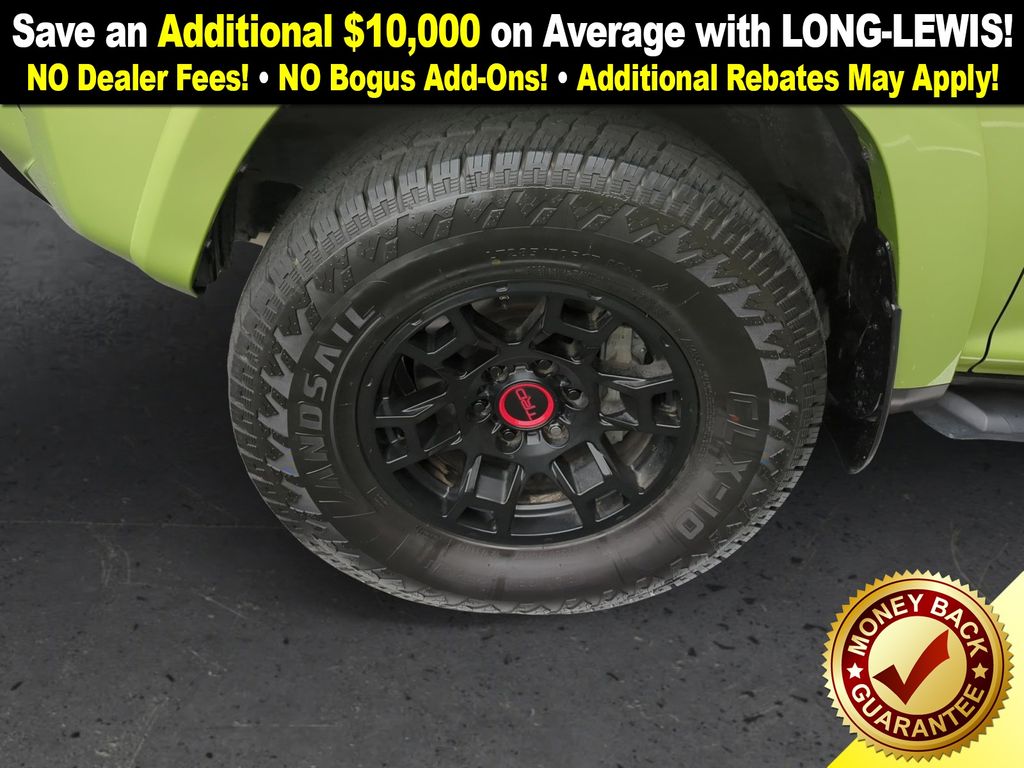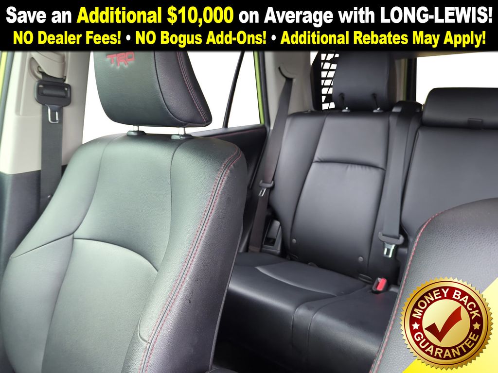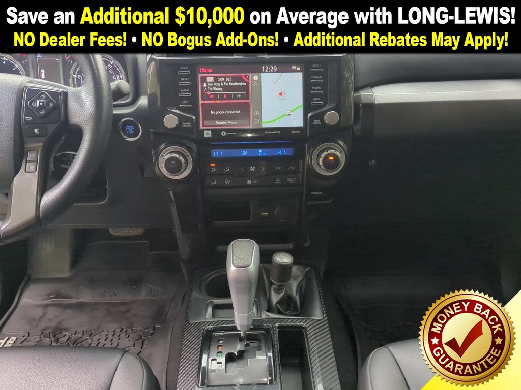Priced below KBB Fair Purchase Price! 4WD, Black/Graphite w/SofTex Seat Trim, 15 Speakers, 3.727 Axle Ratio, 4-Wheel Disc Brakes, ABS brakes, Air Conditioning, Alloy wheels, AM/FM radio: SiriusXM, Anti-whiplash front head restraints, Apple CarPlay/Android Auto, Auto High-beam Headlights, Auto-dimming Rear-View mirror, Automatic temperature control, Black Lug Nuts, Blind Spot Monitor (BSM), Brake assist, Bumpers: body-color, Compass, Driver door bin, Driver vanity mirror, Dual front impact airbags, Dual front side impact airbags, Dual Zone Auto Climate Control, Electronic Stability Control, Emergency communication system: Safety Connect with 1-year trial, Fog Lights, Fox Shocks, Front anti-roll bar, Front Bucket Seats, Front Center Armrest, Front dual zone A/C, Front fog lights, Front reading lights, Front wheel independent suspension, Garage Door Opener, Garage door transmitter: HomeLink, Heated door mirrors, Heated Front Bucket Seats, Heated front seats, Illuminated entry, Knee airbag, Leather Shift Knob, Low tire pressure warning, Multi-Terrain Back Monitor, Navigation System, Occupant sensing airbag, Outside Rear View Mirror, Outside temperature display, Overhead airbag, Overhead console, Panic alarm, Passenger door bin, Passenger vanity mirror, Power door mirrors, Power driver seat, Power moonroof, Power passenger seat, Power steering, Power Tilt & Slide Moonroof w/Sunshade, Power windows, Radio: Premium Audio w/JBL, Rear anti-roll bar, Rear seat center armrest, Rear window defroster, Rear window wiper, Remote keyless entry, Roof rack, Security system, SofTex Seat Trim, Speed control, Speed-sensing steering, Split folding rear seat, Spoiler, Steering wheel mounted audio controls, Tachometer, Telescoping steering wheel, Tilt steering wheel, Traction control, TRD Badging, TRD Pro All Weather Floor Liner, TRD Shift Knob, Trip computer, Turn signal indicator mirrors, Variably intermittent wipers, Wheel Locks, Wheels: 17" Matte Black Flow-Formed TRD Alloy, 4WD, Black/Graphite w/SofTex Seat Trim.