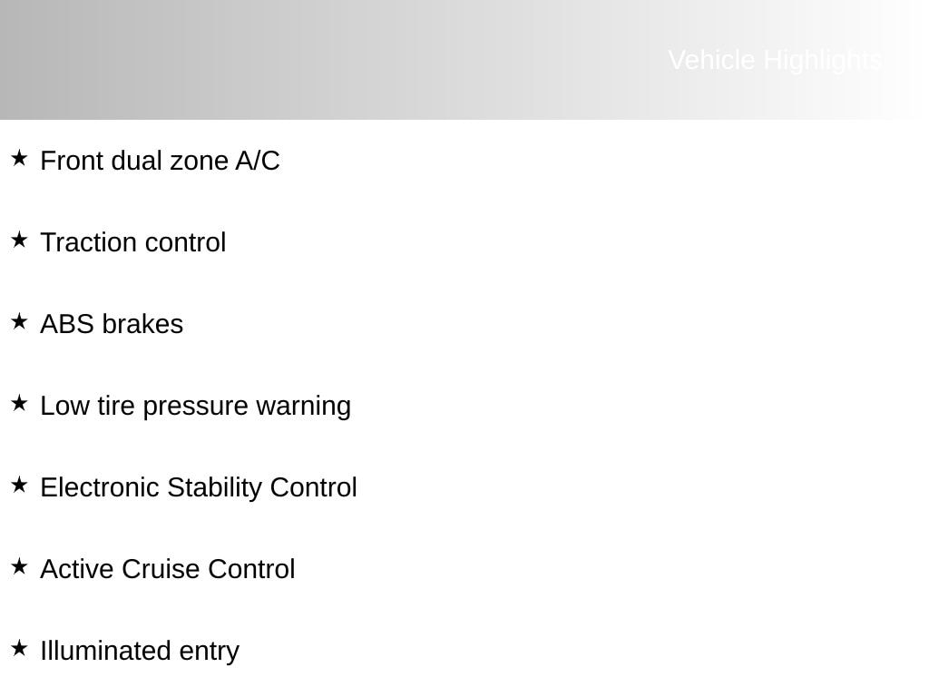 - Adaptive Cruise Control: Dynamic Radar Cruise Control (DRCC)
