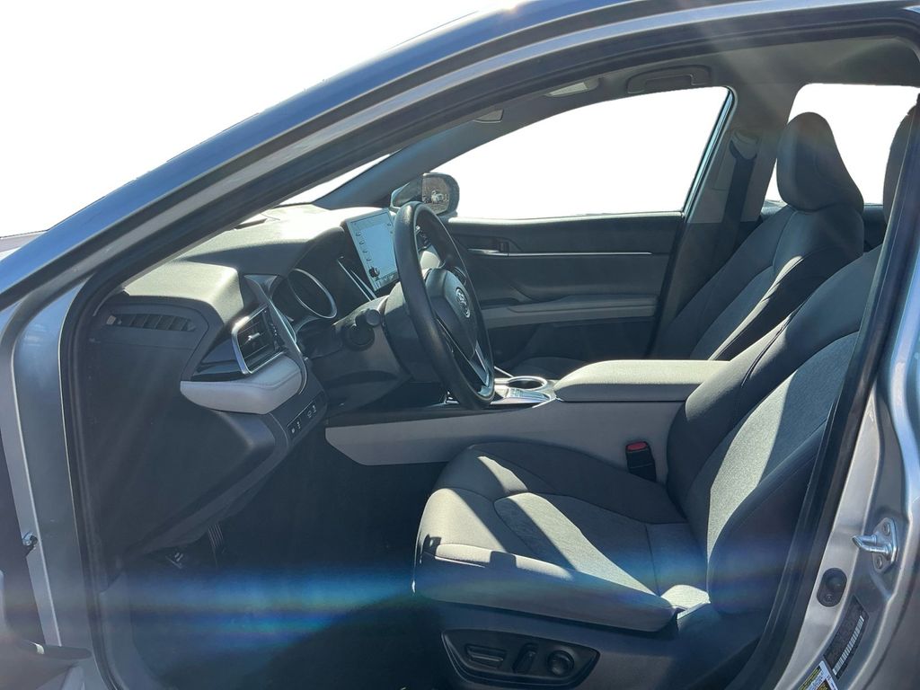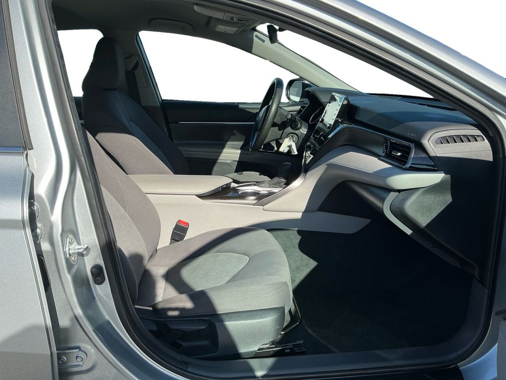 2023 Toyota Camry LE Silver LE FWD 8-Speed Automatic 2.5L I4 DOHC 16V Cloth, 4-Wheel Disc Brakes, 6 Speakers, 7.5J x 17" Alloy Wheels, ABS brakes, Air Conditioning, Alloy wheels, AM/FM radio: SiriusXM, Apple CarPlay/Android Auto, Auto High-beam Headlights, Automatic temperature control, Brake assist, Bumpers: body-color, Delay-off headlights, Driver door bin, Driver vanity mirror, Dual front impact airbags, Dual front side impact airbags, Electronic Stability Control, Emergency communication system: Safety Connect (1-year trial), Exterior Parking Camera Rear, Fabric Seat Trim, Four wheel independent suspension, Front anti-roll bar, Front Bucket Seats, Front Center Armrest, Front dual zone A/C, Front reading lights, Fully automatic headlights, Illuminated entry, Knee airbag, Low tire pressure warning, Occupant sensing airbag, Outside temperature display, Overhead airbag, Overhead console, Panic alarm, Passenger door bin, Passenger vanity mirror, Power door mirrors, Power driver seat, Power steering, Power windows, Radio data system, Radio: Audio, Rear anti-roll bar, Rear seat center armrest, Rear side impact airbag, Rear window defroster, Remote keyless entry, Security system, Speed control, Speed-sensing steering, Split folding rear seat, Steering wheel mounted audio controls, Tachometer, Telescoping steering wheel, Tilt steering wheel, Traction control, Trip computer, Variably intermittent wipers, Cloth.