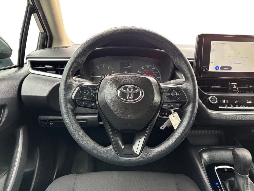 2024 Toyota Corolla LE Black LE FWD CVT 2.0L I4 DOHC 16V 16" Steel Wheels w/Covers, 4-Wheel Disc Brakes, 6 Speakers, ABS brakes, Air Conditioning, AM/FM radio: SiriusXM, Auto High-beam Headlights, Automatic temperature control, Brake assist, Bumpers: body-color, Delay-off headlights, Driver door bin, Driver vanity mirror, Dual front impact airbags, Dual front side impact airbags, Electronic Stability Control, Emergency communication system: Safety Connect (up to 10-year trial subscription), Exterior Parking Camera Rear, Fabric Seat Trim, Front anti-roll bar, Front Bucket Seats, Front Center Armrest, Front reading lights, Front wheel independent suspension, Fully automatic headlights, Illuminated entry, Knee airbag, Low tire pressure warning, Occupant sensing airbag, Outside temperature display, Overhead airbag, Panic alarm, Passenger door bin, Passenger vanity mirror, Power door mirrors, Power steering, Power windows, Radio data system, Radio: 8" Toyota Audio Multimedia, Rear anti-roll bar, Rear seat center armrest, Rear side impact airbag, Rear window defroster, Remote keyless entry, Speed control, Split folding rear seat, Steering wheel mounted audio controls, Tachometer, Telescoping steering wheel, Tilt steering wheel, Traction control, Trip computer.