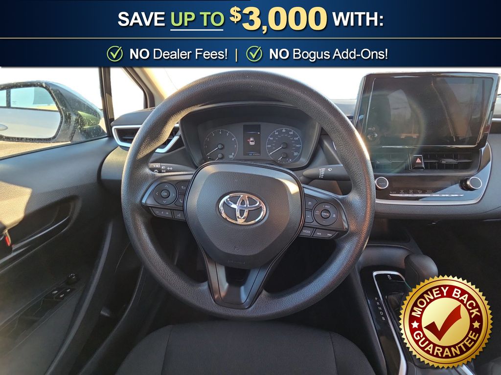 16" Steel Wheels w/Covers, 4-Wheel Disc Brakes, 6 Speakers, ABS brakes, Air Conditioning, AM/FM radio: SiriusXM, Auto High-beam Headlights, Automatic temperature control, Brake assist, Bumpers: body-color, Delay-off headlights, Driver door bin, Driver vanity mirror, Dual front impact airbags, Dual front side impact airbags, Electronic Stability Control, Emergency communication system: Safety Connect (up to 10-year trial subscription), Exterior Parking Camera Rear, Fabric Seat Trim, Front anti-roll bar, Front Bucket Seats, Front Center Armrest, Front reading lights, Front wheel independent suspension, Fully automatic headlights, Illuminated entry, Knee airbag, Low tire pressure warning, Occupant sensing airbag, Outside temperature display, Overhead airbag, Panic alarm, Passenger door bin, Passenger vanity mirror, Power door mirrors, Power steering, Power windows, Radio data system, Radio: 8" Toyota Audio Multimedia, Rear anti-roll bar, Rear seat center armrest, Rear side impact airbag, Rear window defroster, Remote keyless entry, Speed control, Split folding rear seat, Steering wheel mounted audio controls, Tachometer, Telescoping steering wheel, Tilt steering wheel, Traction control, Trip computer. 2024 Toyota Corolla LE