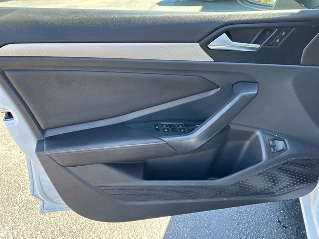 2023 Volkswagen Jetta 1.5T S Certified. Pure White 1.5T S FWD 8-Speed Automatic with Tiptronic 1.5L I-4 DI DOHC Turbocharged Volkswagen Certified, Titan Black Cloth, 4 Speakers, 4-Wheel Disc Brakes, ABS brakes, Air Conditioning, Alloy wheels, AM/FM radio, Brake assist, Bumpers: body-color, Cloth Seat Trim, Delay-off headlights, Driver door bin, Driver vanity mirror, Dual front impact airbags, Dual front side impact airbags, Electronic Stability Control, Emergency communication system: VW Car-Net Safe & Secure 5-year, Exterior Parking Camera Rear, Front anti-roll bar, Front Bucket Seats, Front Center Armrest, Front Comfort Seats, Front wheel independent suspension, Fully automatic headlights, Heated door mirrors, Illuminated entry, Low tire pressure warning, Occupant sensing airbag, Outside temperature display, Overhead airbag, Overhead console, Panic alarm, Passenger door bin, Passenger vanity mirror, Power door mirrors, Power steering, Power windows, Radio data system, Radio: MIB3 Composition Color w/6.5" Touchscreen, Rear anti-roll bar, Rear reading lights, Rear window defroster, Remote keyless entry, Speed control, Speed-sensing steering, Split folding rear seat, Steering wheel mounted audio controls, Tachometer, Telescoping steering wheel, Tilt steering wheel, Traction control, Trip computer, Variably intermittent wipers, Wheels: 16" 2-Tone Machined Alloy, Titan Black Cloth.