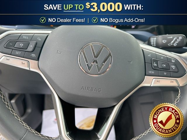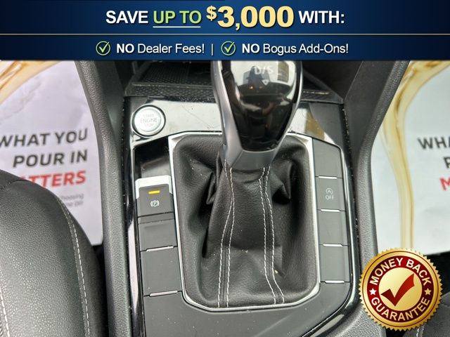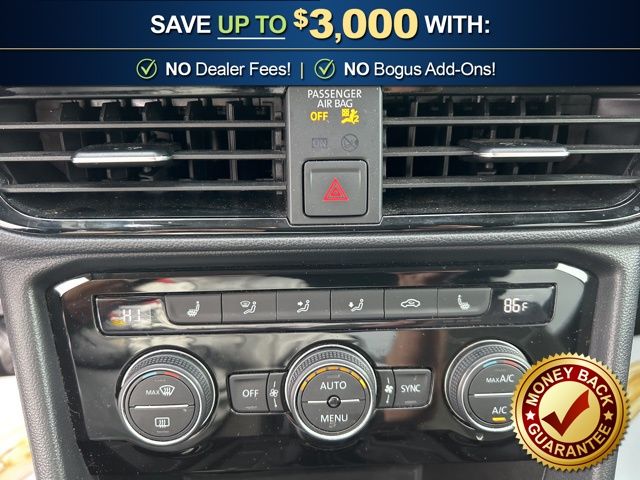 3.23 Axle Ratio, 4-Wheel Disc Brakes, 6 Speakers, ABS brakes, Active Blind Spot Monitor, Air Conditioning, Alloy wheels, AM/FM radio: SiriusXM with 360L, Auto High-beam Headlights, Automatic temperature control, Brake assist, Bumpers: body-color, CloudTex & Cloth Seating Surfaces, Compass, Delay-off headlights, Driver door bin, Driver vanity mirror, Dual front impact airbags, Dual front side impact airbags, Electronic Stability Control, Emergency communication system: VW Car-Net Safe & Secure 5-year, Exterior Parking Camera Rear, Front anti-roll bar, Front Bucket Seats, Front Center Armrest, Front dual zone A/C, Front reading lights, Front Strut Rear Torsion Beam Suspension, Front wheel independent suspension, Fully automatic headlights, Heated door mirrors, Heated Front Bucket Seats, Heated front seats, Heated steering wheel, Illuminated entry, Leather Shift Knob, Low tire pressure warning, Occupant sensing airbag, Outside temperature display, Overhead airbag, Overhead console, Panic alarm, Passenger door bin, Passenger vanity mirror, Power door mirrors, Power driver seat, Power steering, Power windows, Radio data system, Radio: MIB3 Composition Media AM/FM/HD, Rain sensing wipers, Rear anti-roll bar, Rear seat center armrest, Rear window defroster, Rear window wiper, Remote keyless entry, Roof rack: rails only, Security system, Speed control, Speed-sensing steering, Split folding rear seat, Spoiler, Steering wheel mounted audio controls, Tachometer, Telescoping steering wheel, Tilt steering wheel, Traction control, Trip computer, Variably intermittent wipers, Wheels: 18" 2-Tone Machined Alloy.