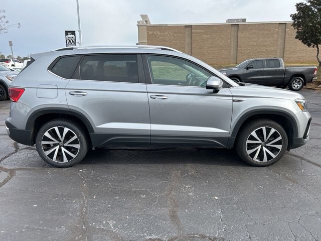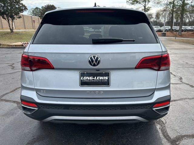 2024 Volkswagen Taos 1.5T SE Certified. Silver 1.5T SE FWD 8-Speed Automatic with Tiptronic 1.5L I4 Turbocharged DOHC 16V LEV3-SULEV30 158hp Volkswagen Certified, 3.23 Axle Ratio, 4-Wheel Disc Brakes, 6 Speakers, ABS brakes, Active Blind Spot Monitor, Air Conditioning, Alloy wheels, AM/FM radio: SiriusXM with 360L, Auto High-beam Headlights, Automatic temperature control, Brake assist, Bumpers: body-color, CloudTex & Cloth Seating Surfaces, Compass, Delay-off headlights, Driver door bin, Driver vanity mirror, Dual front impact airbags, Dual front side impact airbags, Electronic Stability Control, Emergency communication system: VW Car-Net Safe & Secure 5-year, Exterior Parking Camera Rear, Front anti-roll bar, Front Bucket Seats, Front Center Armrest, Front dual zone A/C, Front reading lights, Front Strut Rear Torsion Beam Suspension, Front wheel independent suspension, Fully automatic headlights, Heated door mirrors, Heated Front Bucket Seats, Heated front seats, Heated steering wheel, Illuminated entry, Leather Shift Knob, Low tire pressure warning, Occupant sensing airbag, Outside temperature display, Overhead airbag, Overhead console, Panic alarm, Passenger door bin, Passenger vanity mirror, Power door mirrors, Power driver seat, Power steering, Power windows, Radio data system, Radio: MIB3 Composition Media AM/FM/HD, Rain sensing wipers, Rear anti-roll bar, Rear seat center armrest, Rear window defroster, Rear window wiper, Remote keyless entry, Roof rack: rails only, Security system, Speed control, Speed-sensing steering, Split folding rear seat, Spoiler, Steering wheel mounted audio controls, Tachometer, Telescoping steering wheel, Tilt steering wheel, Traction control, Trip computer, Variably intermittent wipers, Wheels: 18" 2-Tone Machined Alloy.